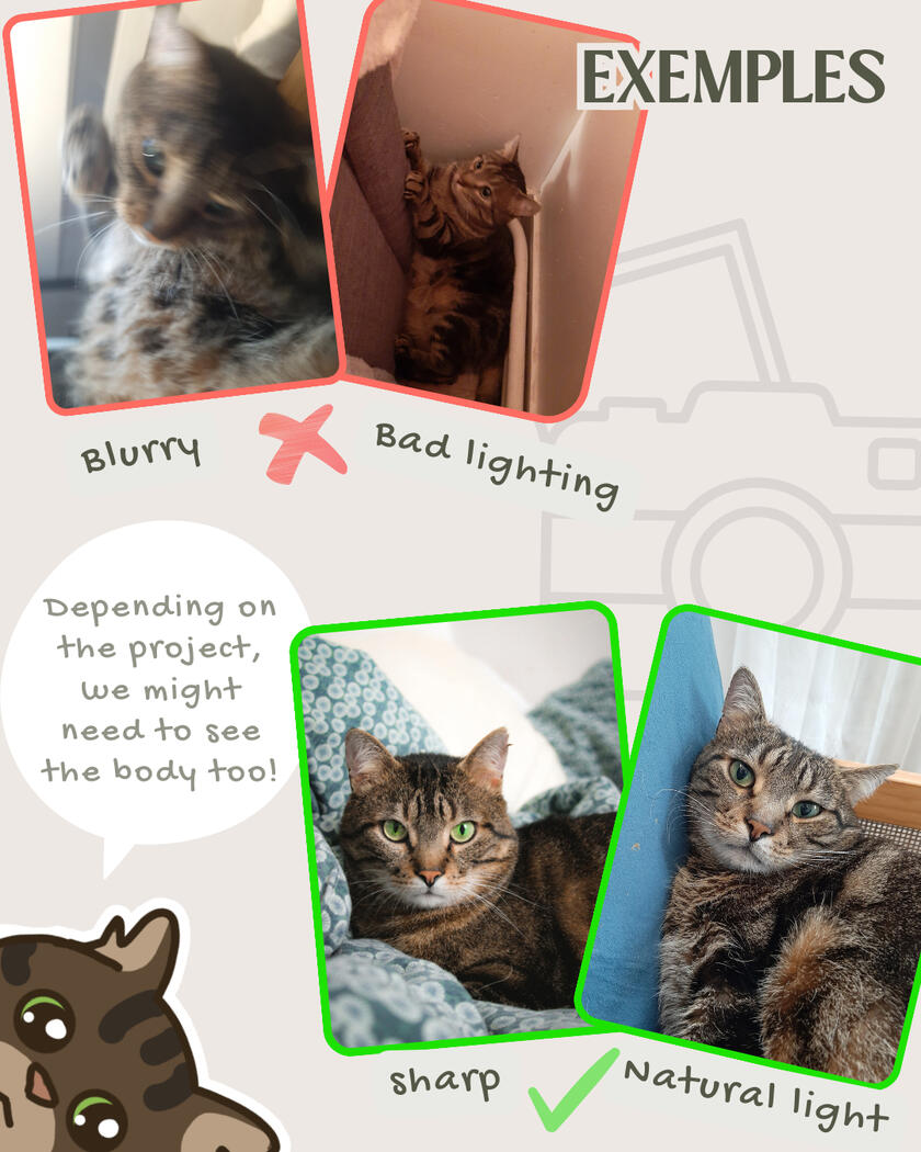 • La photo idéale doit mettre en valeur le caractère unique de votre compagnon, que ce soit de face, de profil ou en 3/4.